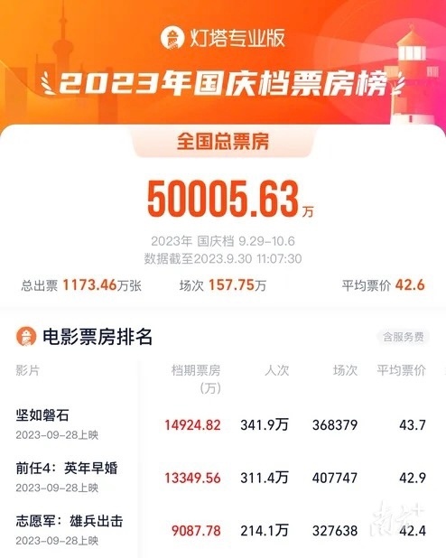 从预售情况来看,国庆档预售票房在9月28昼夜深胜仗破亿,这一亮眼的预售得益通常为本年国庆档开了一个好头。灯塔专科版数据分析师陈晋领受南边日报记者采访时示意,本年春节档票房创造了中国影史第二高的得益,暑期档更是大幅刷新历史票房记载,“大档期与特大影片酿成的虹吸效应照旧显贵,本年国庆档强片云集,因此咱们对档期票房照旧很有信心的”。