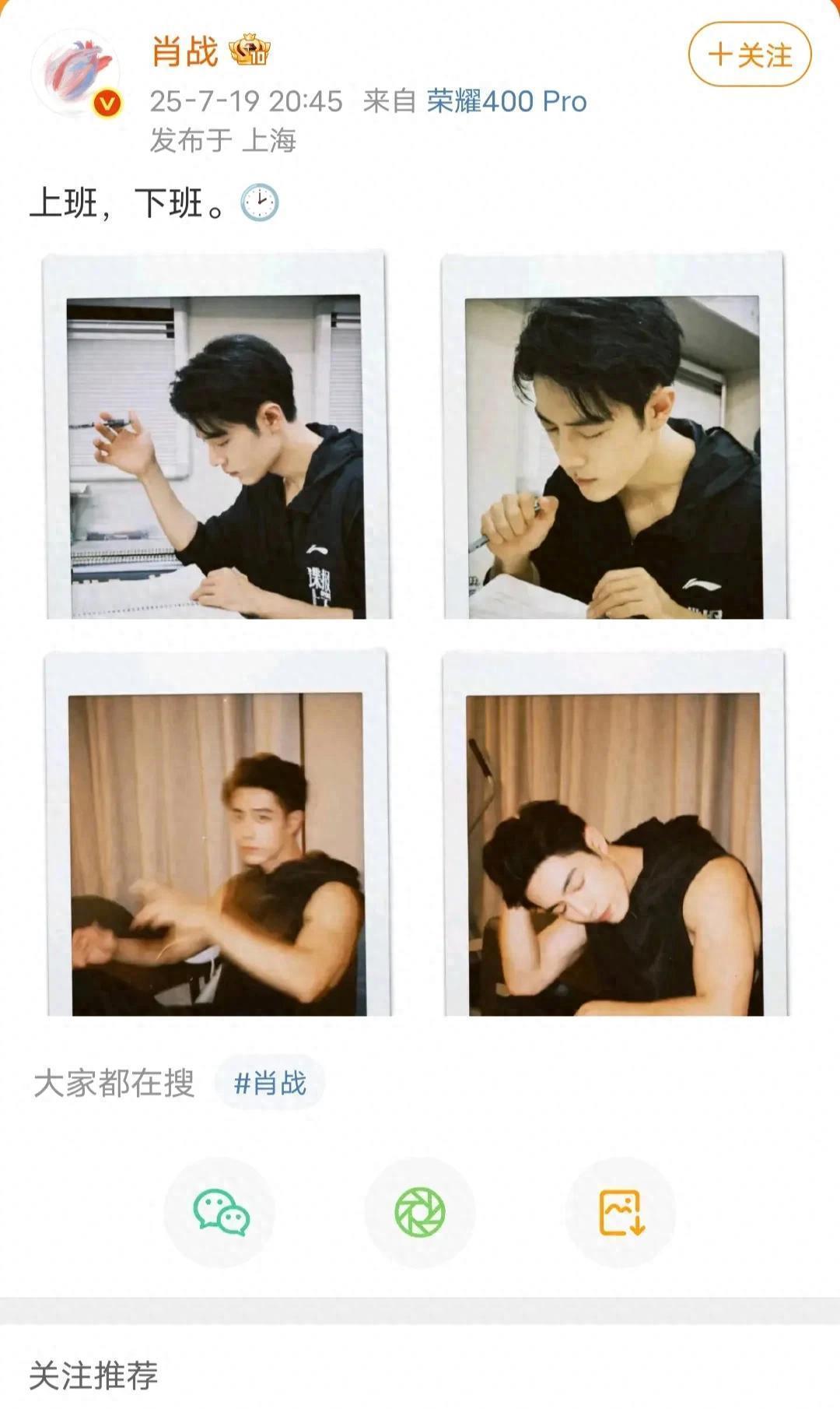 肖战于2025年7月19日庄重将微博昵称从“X玖少年团肖战DAYTOY”变嫌为“肖战”香港六合彩棋牌,并于当日发布更名后首条微博:“上班,放工。”配图四张像片。