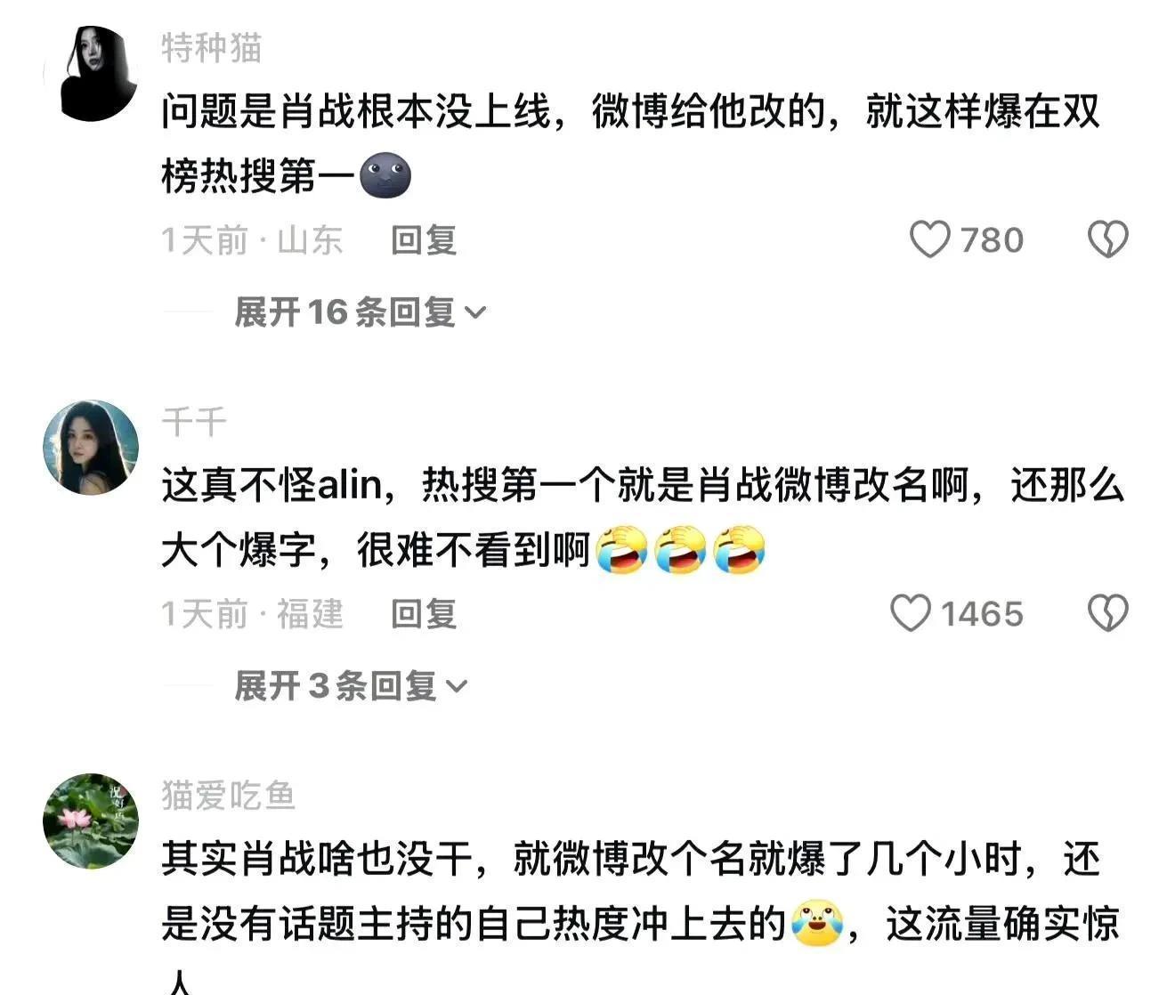 粉丝强调“肖战未上线,微博主动更名”仍引爆双榜第一,印证其顶流影响力。